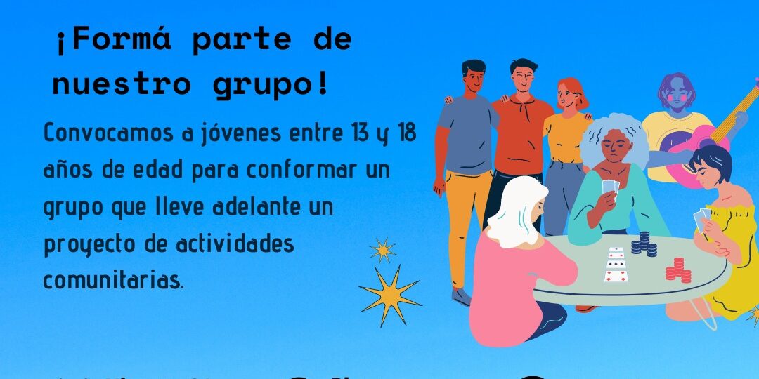 Lanzamos la convocatoria para conformar un grupo llamado Jóvenes Protagonistas, en el que se busca promover la participación de los mismos en actividades comunitarias. La propuesta será presentada el próximo Viernes 21 de abril a las 16 hs. por personal del Área de la Niñez, la Adolescencia y la Familia, perteneciente a Desarrollo Social de la Municipalidad. Destinado a jóvenes adolescentes entre 13 y 18 años de edad. Se trata de encontrar un espacio favorable a la integración entre generaciones y abogar por un mayor compromiso con la comunidad.