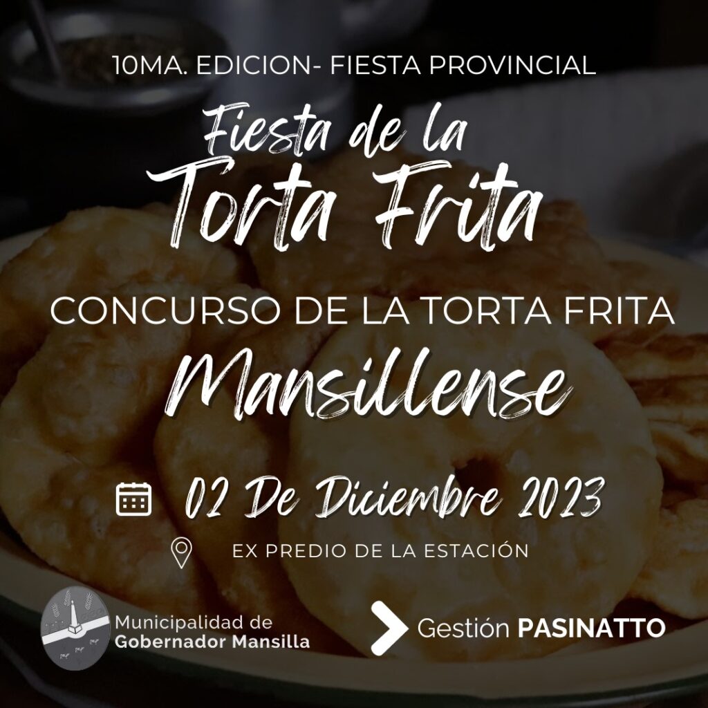 🟠En el marco de la 10° edición de la Fiesta Provincial de la Torta Frita, la Dirección de Cultura de la Municipalidad de Gobernador Mansilla, organiza el 3° concurso “La torta frita Mansillense” y “La torta frita ➕Grande”.