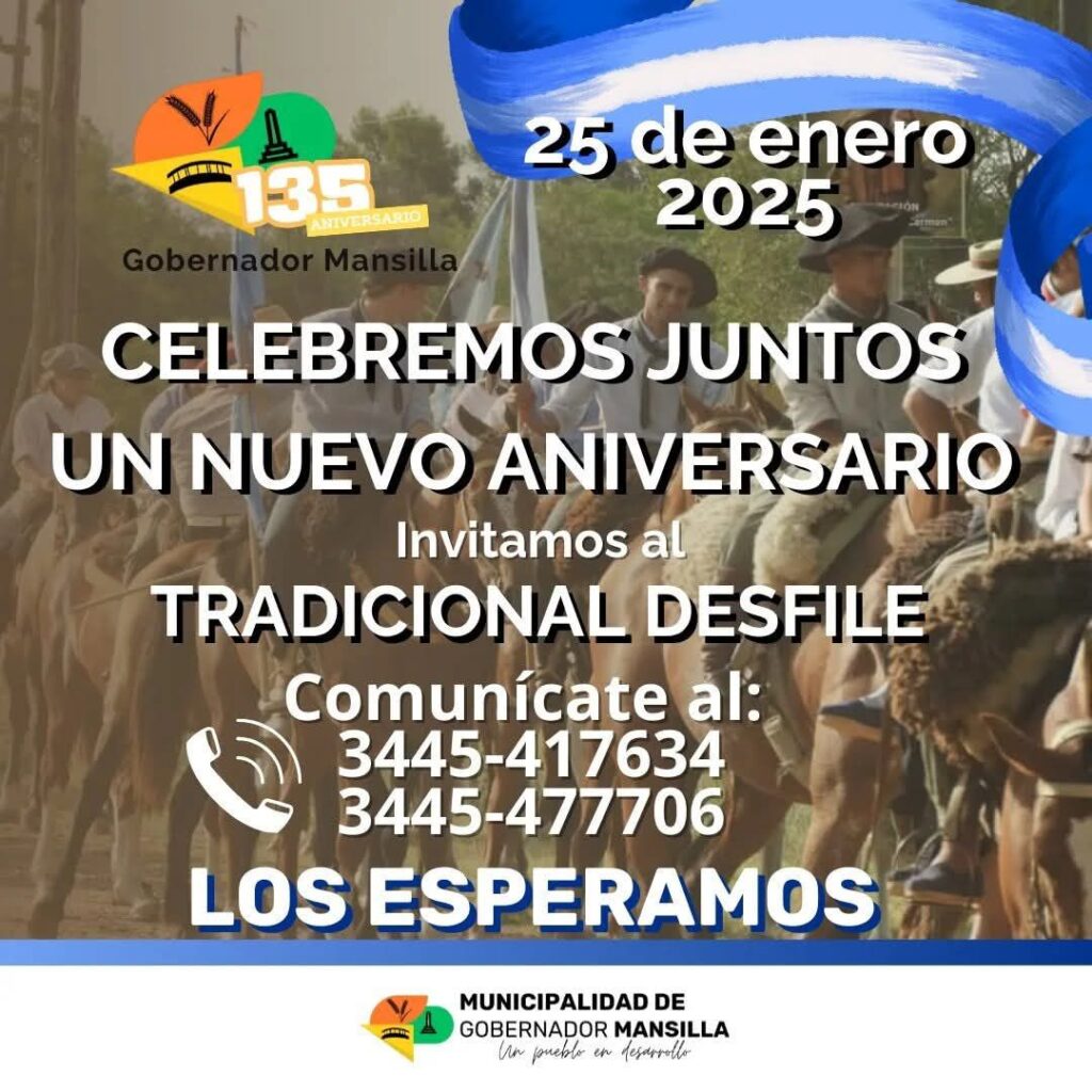 Este año, nuestra ciudad conmemora 135 años, y queremos que tú seas parte de esta celebración tan especial. Te invitamos a participar en el tradicional desfile que se llevará a cabo para honrar este gran aniversario.