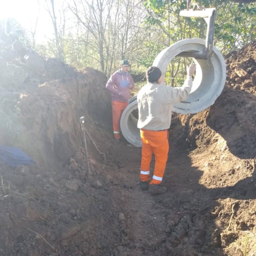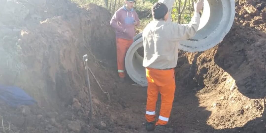 Trabajando en el lugar que lo necesita, se realizó el recambio de la alcantarilla en la calle de Los Kroger, a 100 metros de la Escuela. Una obra que prioriza el acceso seguro a la educación.