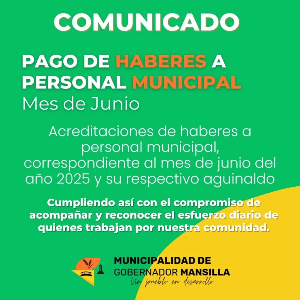 El día 1° de julio, el Municipio ha cumplido en tiempo y forma con el pago del medio aguinaldo y los sueldos del mes de junio.