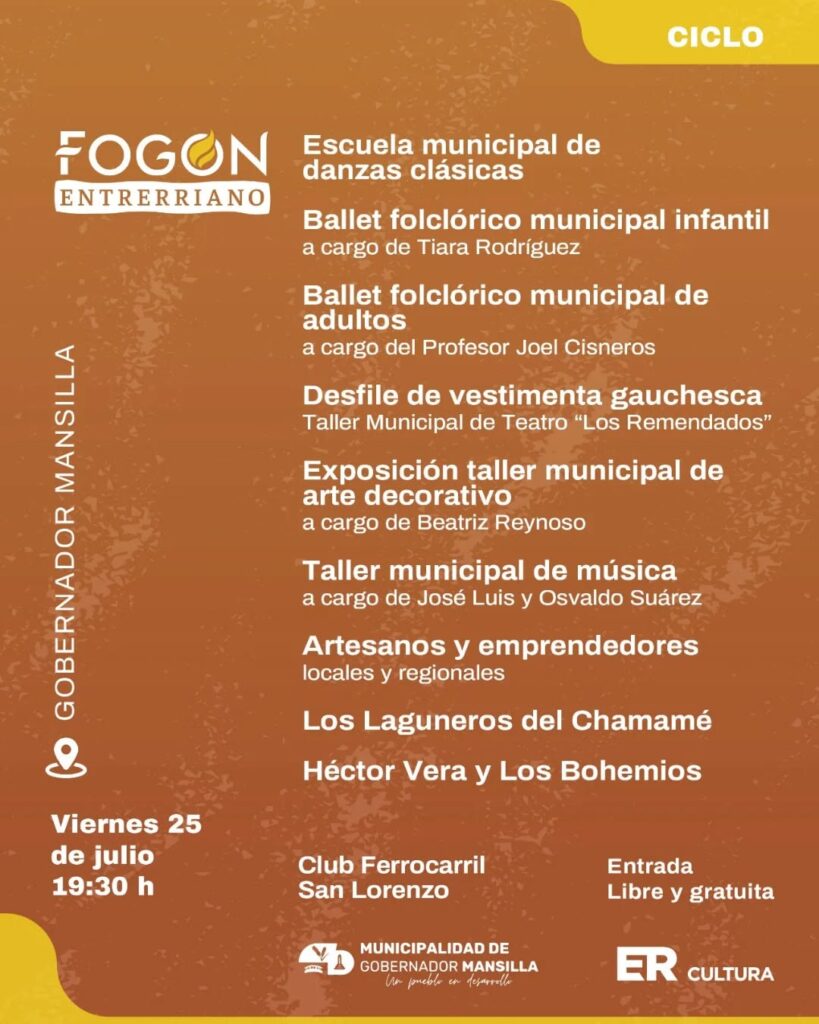 El próximo viernes 25 de julio a las 19:30, el Club Ferrocarril San Lorenzo se llena de música, danza y tradición con una nueva edición del ciclo cultural impulsado por la Secretaría de Cultura de Entre Ríos, en cogestión con nuestro municipio.