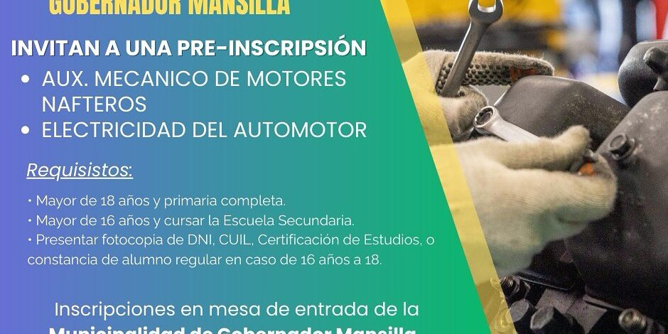 La Escuela de Educación Técnica N.º 1 “Dr. Osvaldo Magnasco”, junto al Gobierno de Gobernador Mansilla, te invitan a preinscribirte en los siguientes cursos GRATUITOS: