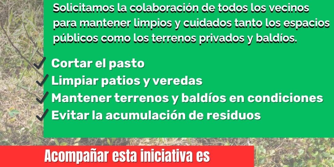 Desde la Municipalidad de Gobernador Mansilla solicitamos la colaboración de todos los vecinos para mantener limpios y cuidados tanto los espacios públicos como los terrenos privados y baldíos.
