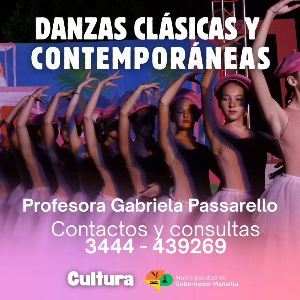 Desde hoy ya podés anotarte para participar de las clases de danzas clásicas y contemporáneas a cargo de la Profesora Gabriela Passarello.